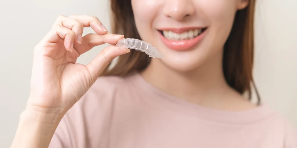 マウスピースを外して普段通りの歯磨きや食事ができるのもインビザライン治療のメリットの一つです。ワイヤー矯正で使う装置は、自分では取り外すことができません。歯と矯正装置との間に食べ物が挟まりやすく、歯磨きが難しいと感じる方も多いのですが、インビザラインの場合は、マウスピースを外して清掃できるので口の中を清潔に保ちやすいです。